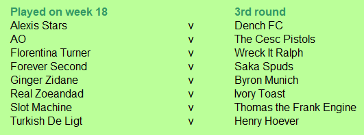 1st round week 5, 2nd round week 11, 3rd round week 17, 4th round week 23, Semi - finals week 30, Final on the final week