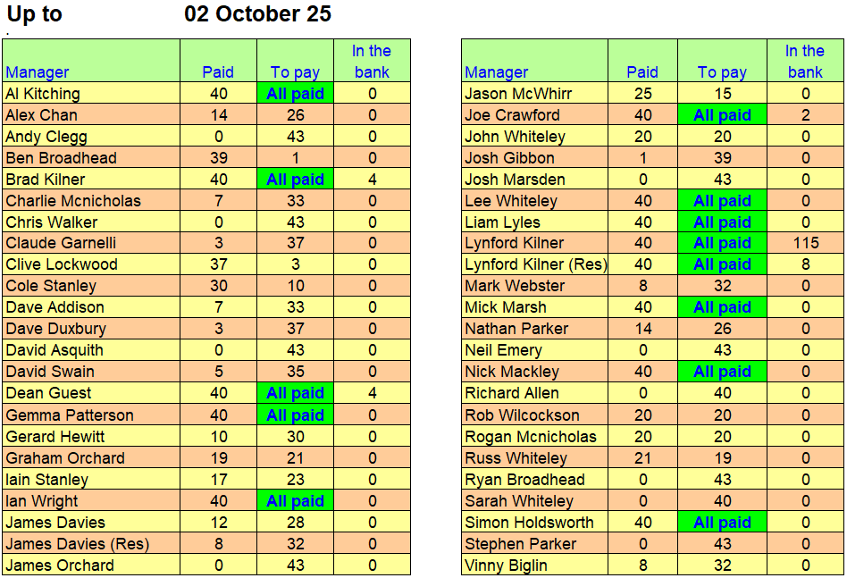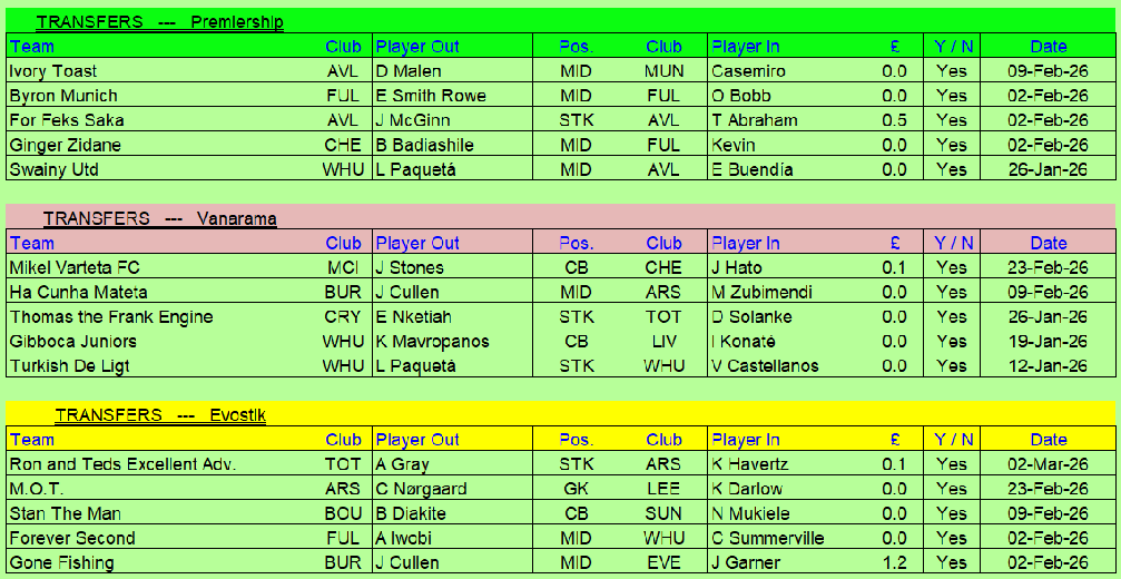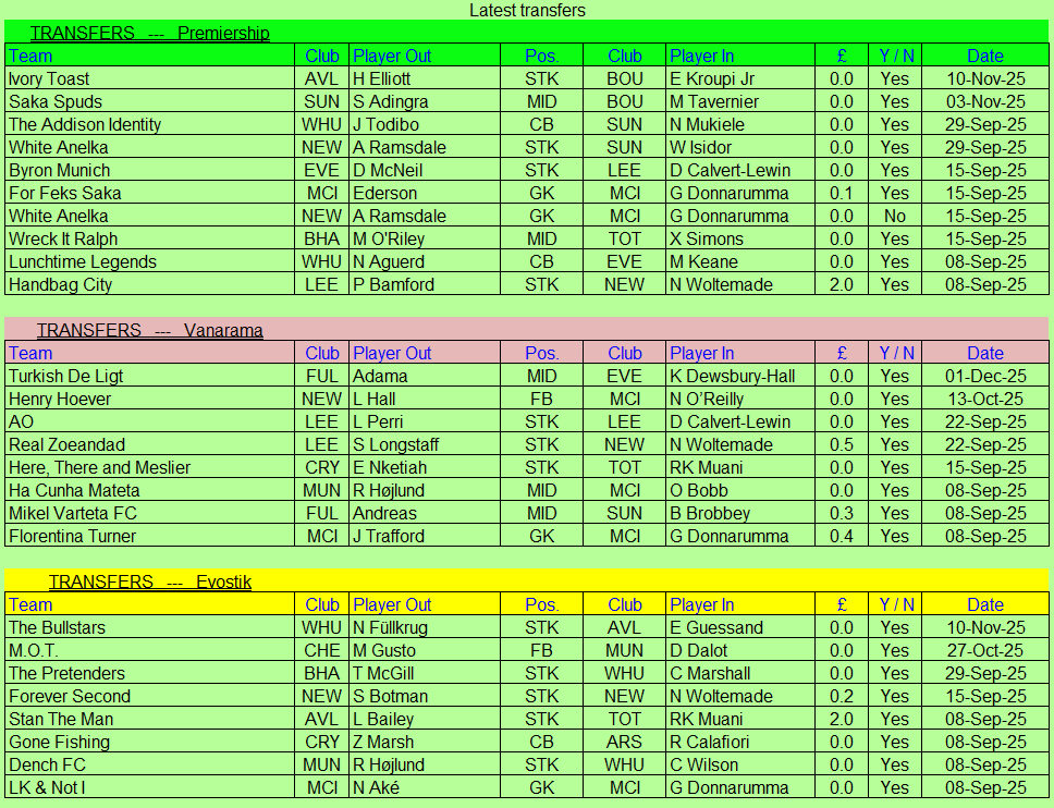 Transfers dates for 2025 / 2026 season (In before 6pm on the dates below) & other info