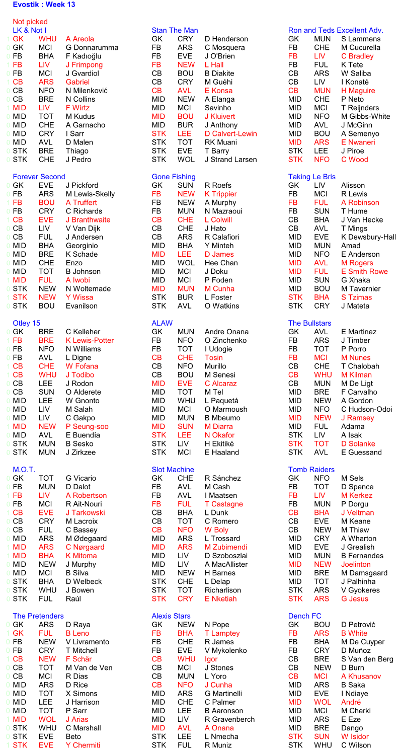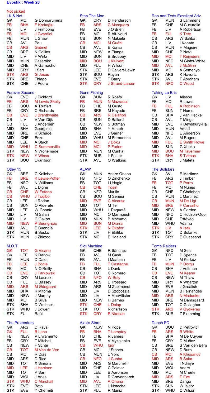 Teams picked