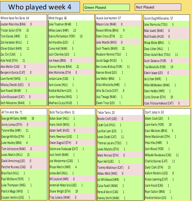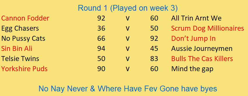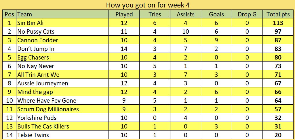 Tries - Half backs & Backs 10 points & Forwards 18 points Man of steel 25 points