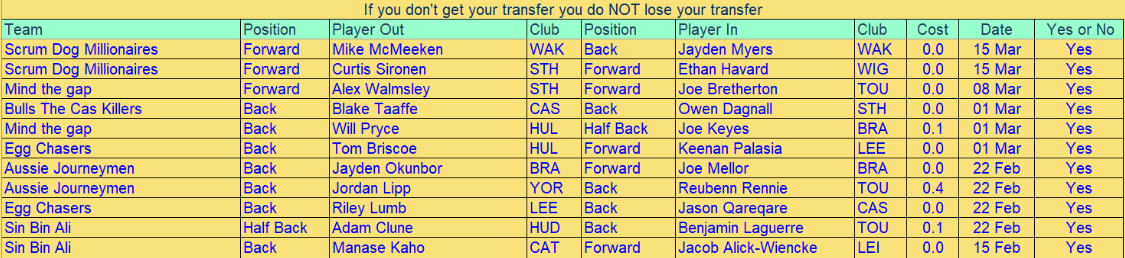Transfers will have to be in on a Sunday before 18.00 you will have 8 for the season