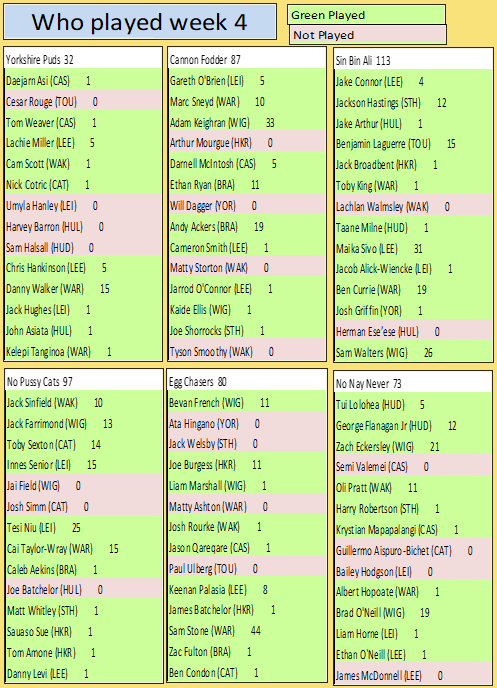 Scoring - Points - All points will come from the Super league website